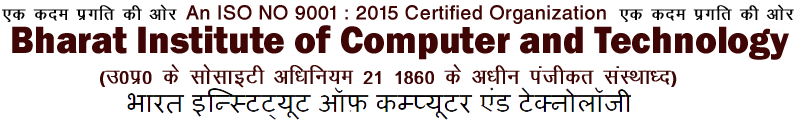 In order to produce Information Technology Professionals, IT education requires a good infrastructure and high quality competence. Our Mission ( Welcome to Bharat Institute of Computer and Technology ) has been decided to provide the Computer Education by the help of State & Indian Central Government planning & Programmes announces time to time in nominal charge for every person of our lower and middle class of society. I wish and try to success the dream of computer education in all India.